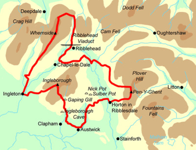 The Yorkshire Three Peaks walk is a triangular route covering 24 miles (38.6 km) with over 5,000 ft (1,600 meters) of ascent and taking in the 3 peaks of Pen-y-ghent, Ingleborough, and Whernside. We plan to start at Ribblehead at 7am (sunrise) and tackle the route anticlockwise. There should be ample parking on the roadside at Ribblehead. Sunset will be just before 7.00pm - we should be finished by then but bring a head torch just incase. There will be support for the walk with two planned support points - Chapel-le-Dale and Horton in Ribblesdale.