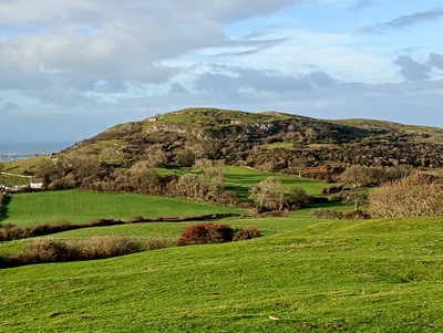 I reckon this area may be new to many people. The walk is around 8 miles from Rhuallt village mainly on good paths, and takes in the 1000' summit of Mynydd y Cwm (subject to forest operations), the lower limestone hill of Mynydd Marian, and a fair stretch of the Offa's Dyke path. On a good day it commands extensive views. There is around 1,400 feet of ascent. There is potential for extending to walk, subject to all the party being willing and the weather co-operating, to take in Moel Hirradug.